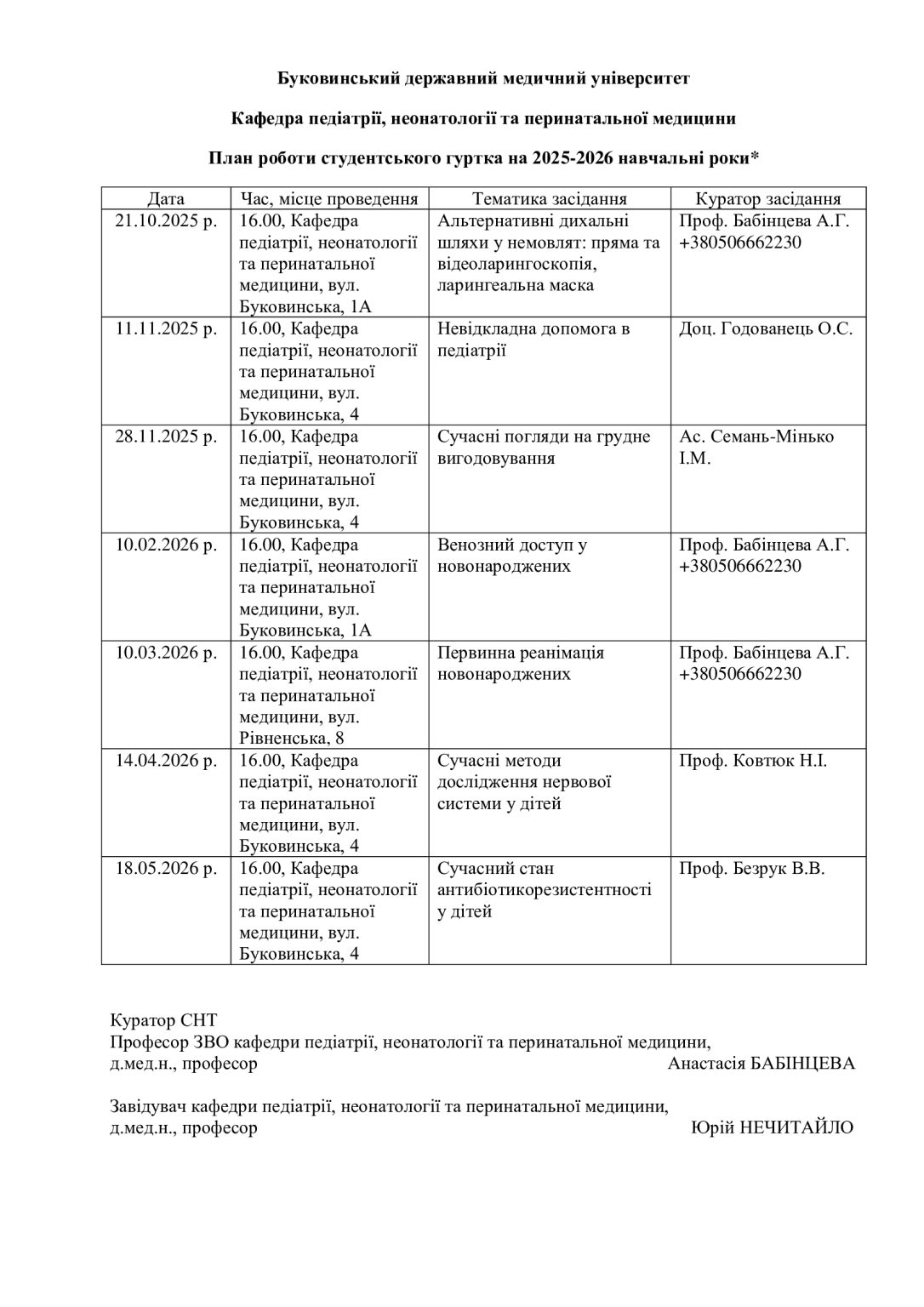 РОЗКЛАД ЗАСІДАНЬ СТУДЕНТСЬКОГО НАУКОВОГО ГУРТКА (2025-2026 навчальний рік)